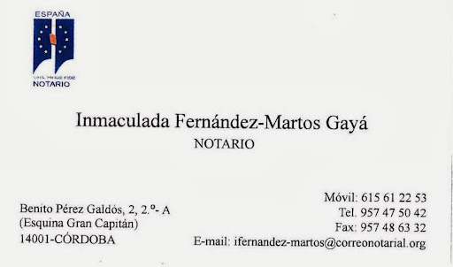 En Inmaculada Fernández Martos Gayá, una de las notarías en Córdoba, encontrarás magníficos profesionales que se preocupan por brindar una atención excepcional a sus clientes. Su trato exquisito y cercano demuestra su alto nivel de profesionalidad y dedicación. Aquí, la información es clara y detallada, asegurándose de que todo esté bien explicado. Su ubicación en la calle Av. del Gran Capitán, 23, Oficina 3.1 en Córdoba facilita el acceso a sus servicios. Si necesitas realizar cualquier trámite legal, no dudes en contactar con ellos. Esta notaría se destaca por su experiencia y amabilidad al resolver asuntos complicados. Sin duda, es una elección 100% recomendable para cualquier gestión notarial que necesites realizar.